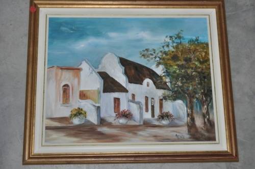 ORIGINAL OIL ON BOARD,COTTAGES,SIGNED AG