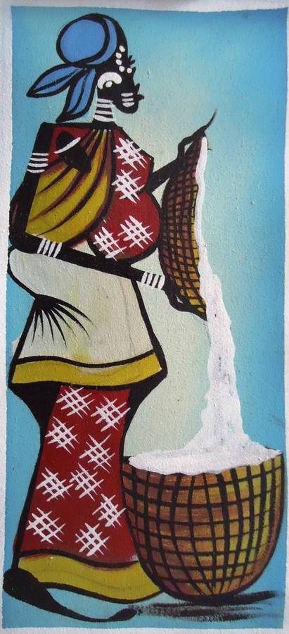 Original painting by artist Rodrick Chadehumbe titled Preparing the Maize