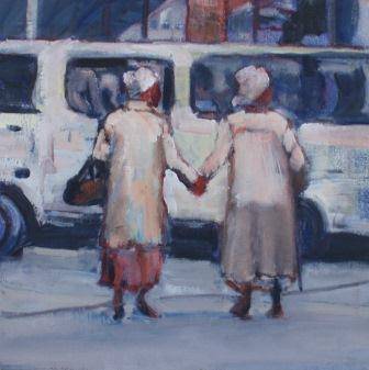 Original oil on canvas on stretcher frame - ready to hang. A compelling study of close friends, painted in interesting pastel hues. Size: H 30cm x W 30cm. Postage in S.Africa R55.00 Overseas buyers please contact seller.