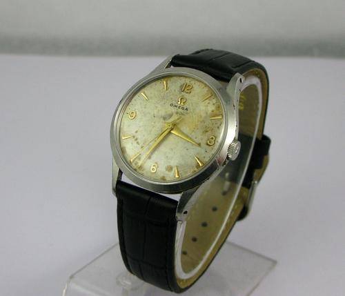 Original Old Vintage Omega Watch. Swiss made. 50-s. 17 jewels. Original Omega signed crown. New genuine leather strap. Mechanically in good running order. Size: 44 x 36 mm. Please see on photos for dial condition. 3 month movement warranty. Free Courier Shipping & Insurance!
