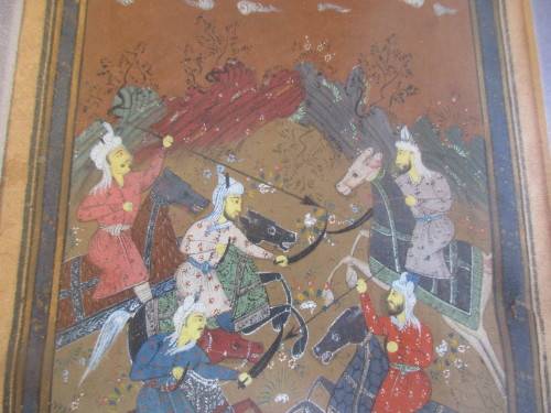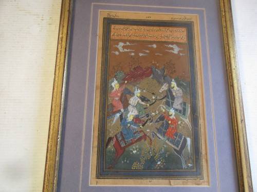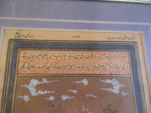Dimensions of frame 333 mm by 233 mm Frame is in good condition Picture 228 mm by 140 mm Page is in excellent condition writing in Arabic script.
