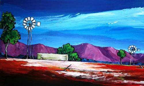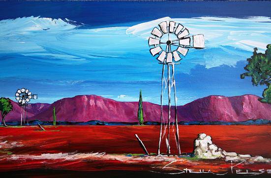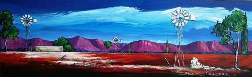Original painting by Stella Pelser - "Boland -  Drie Windpompe" - 475 x 150