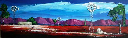 Original painting by Stella Pelser - "Boland - Drie Windpompe" - 475 x 150