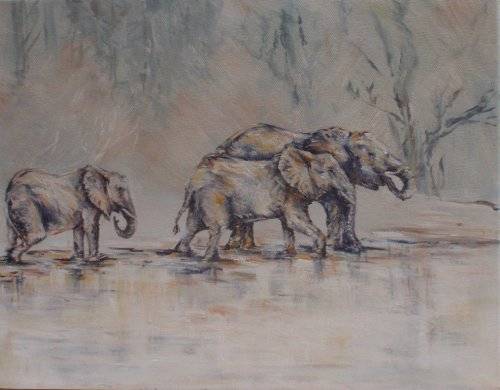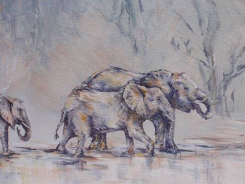 ORIGINAL PAINTING ON CANVAS ON STRETCHER FRAME - READY TO HANG. LOVELY MONOCHROME EFFECT. UNSIGNED BUT CAME WITH OTHER ART (SAME STYLE) THAT WAS SIGNED 'ALEXANDER '09.' SO I ASSUME IT IS THE SAME ARTIST. SIZE: 36CM X 28CM.
