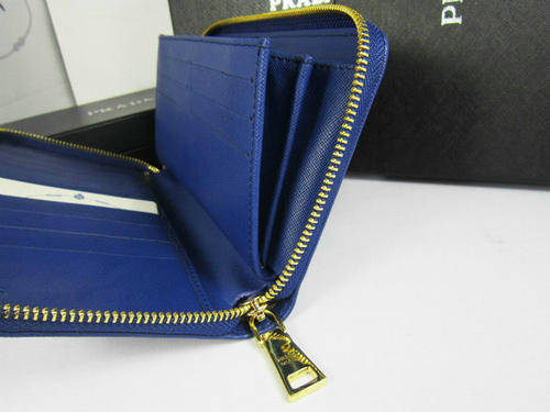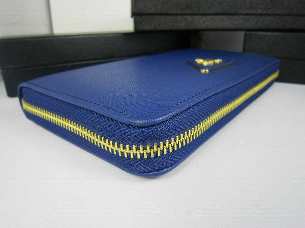 Prada Saffiano Calf Leather Zippy Wallet Blue comes with:original care booklet, Prada dust bag, Prada Card, tag.