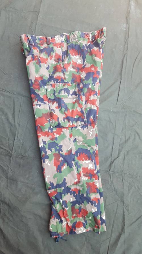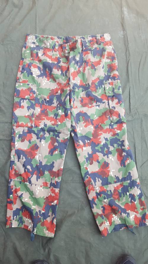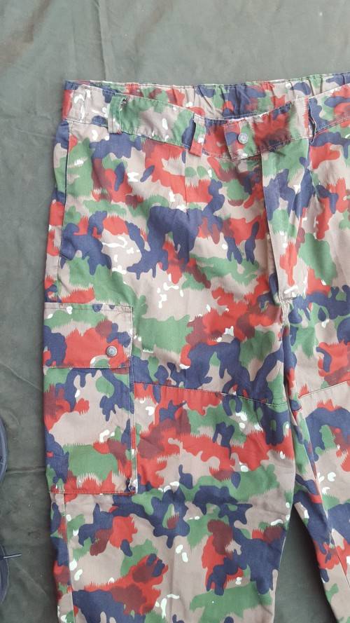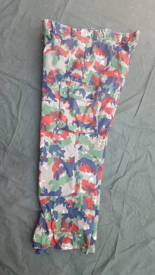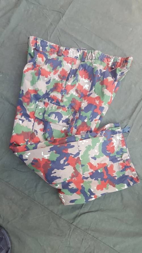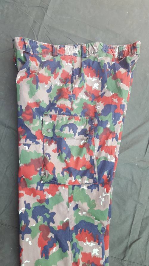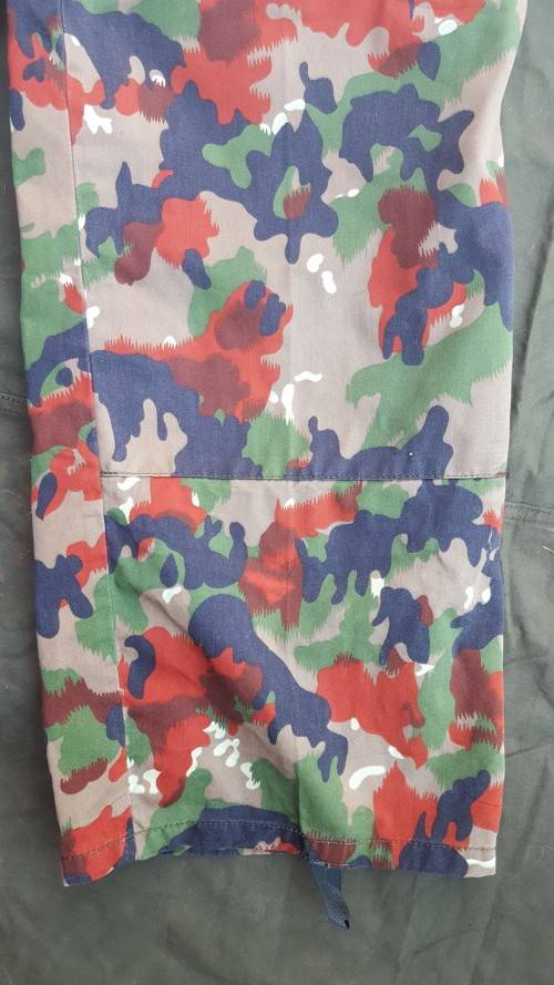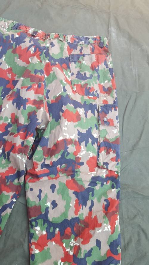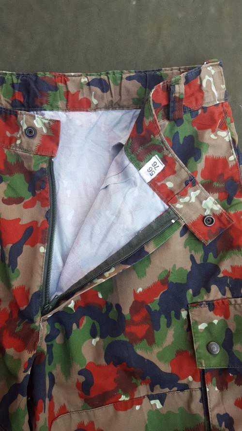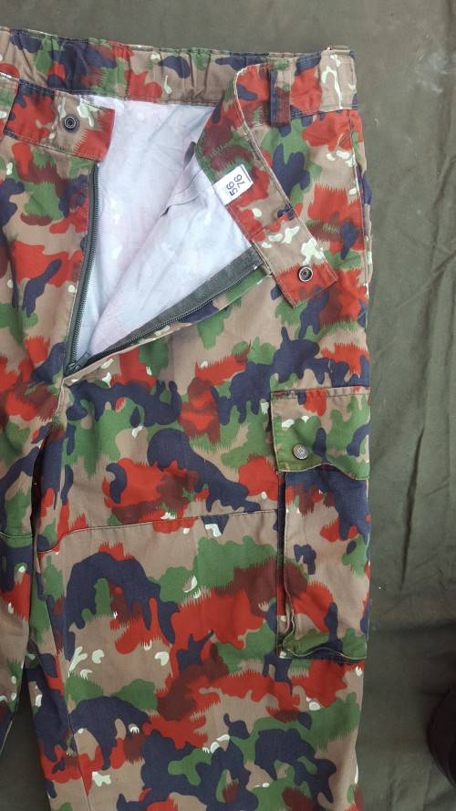 Here on auction we have an original pair of Swiss Taz 57 "alphenfage" camo field-dress trousers - waist XL-XXL (size 42 inch) good used condition.