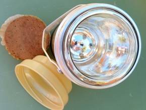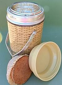 >WITH ORIGINAL CORK LID, PLASTIC LID USABLE AS BOWL.<