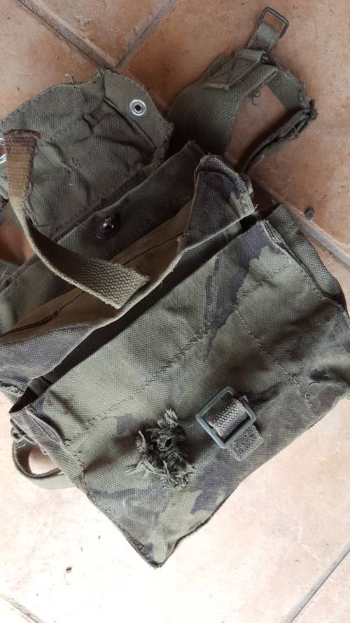 Here on auction we have an original and well used SADF patt 70/73 olive green canvas A-53 radio carry webbing backpack - stains and some fraying - a great period piece with significant character!