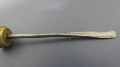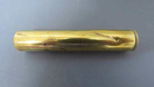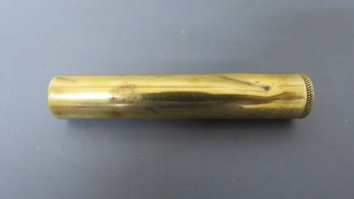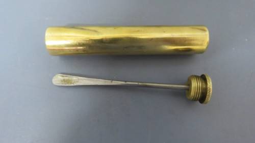 I have on offer a WWI Period British Army Enfield Brass Oil Bottle. This oil bottle would have been used with a variety of rifles notably the Lee-Enfield Rifle. This would have been issued to and carried by a large part of the British Army during the First World War, and were used for oiling the moving parts of the rifle and keeping the barrel clean. These oil bottles were used in WWI and the start of WWII, they were later replaced during the war by plastic bottles due to shortage of brass. This brass oiler measures 9,2 x 1,8 cm. The brass oiler is clearly stamped 'M.K. IV. LB', along with the Broad War Department Arrow Mark. Ideal Militaria collectors piece.
