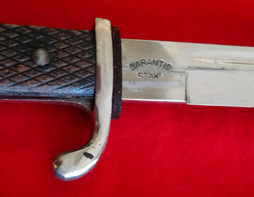 WW2 ORIGINAL GERMAN PARADE BAYONET. MARKED "GARANTIE STAHL". SCARCE WOODEN GRIP VARIANT