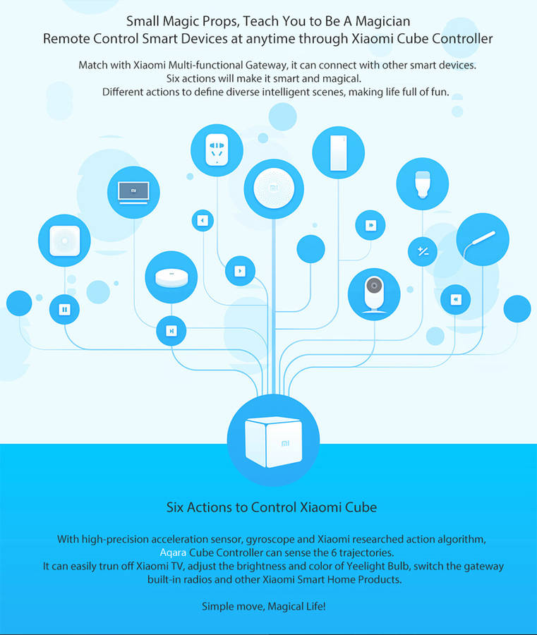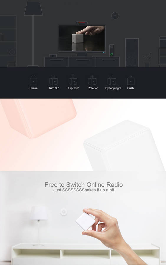 Control | Push, shake, knock twice, rotate, overturn 90 degrees, overturn 180 degrees |