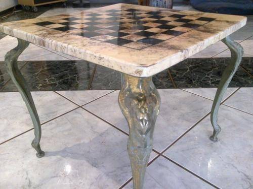 A beautiful chess table with leg in the Ormulu style. The top is made out of wood with simulated marble finish. The quality is outstanding!. The chess table measures 47.5cm x 47.5 cm and stands 43.5cm high. A beautiful display piece!!