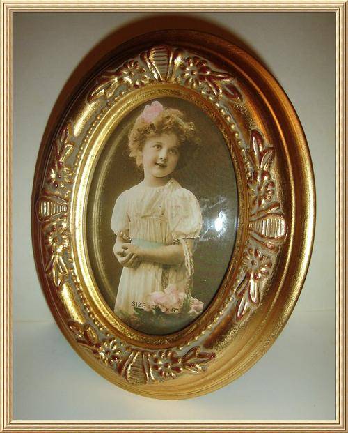 A lovely ornate Wooden Convex Glass Dresser / Mantle Stand Frame, in good condition, size 14cm x 18cm. NB. Girl in frame is a print.