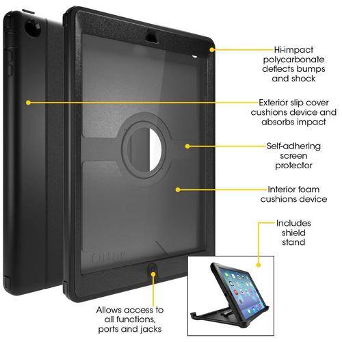 The Otterbox defender series wraps your device in 3 layers of protection. The first layer is a strong polycarbonate shell which caresses your iPad Air, which provides added protection against drops and bumps. The shell features cut outs which are designed to give you access to all of your devices ports and features.