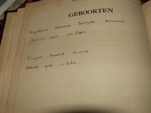 Pragtige ou Hollandse Bybel 1927. Ongeveer 17 cm breed met 1160 bladsye. Bybel is in 'n baie goeie toestand. Hierdie is NIEMAND FAMILIE Bybel.Ingesluit is 2 oorspronklike handgeskrewe begrafnisbriewe (sien fotos) van HENDRIK BATUS NIEMAND GEBORE 1892 GESTERF 1937 EN PETRUS HENDRIK LINDEQUE GEBORE 1882 GESTERF 1918. Voor in die Bybel is geboortes, huwelike, ens aangeteken.