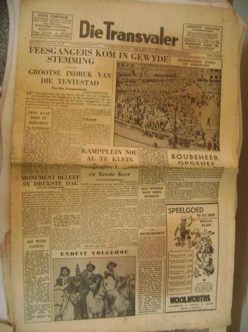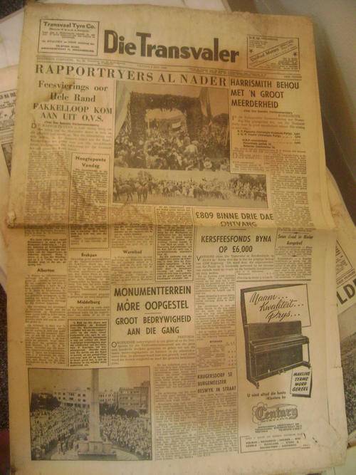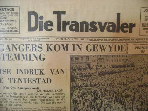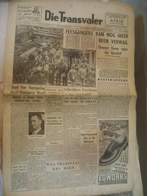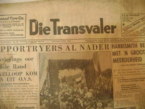 TE KOOP IS HIERDIE 4 OU KOERANTE ('DIE TRANSVALER, ALMAL GEDATEER DESEMBER 1949),