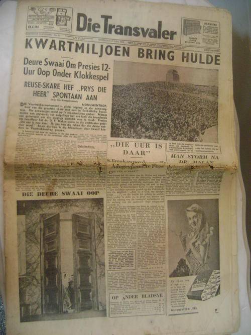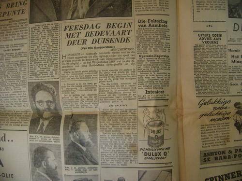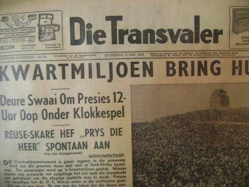 HIERDIE KOERANTE EN BYLAE DEK DIE INWYDING VAN DIE VOORTREKKER MONUMENT