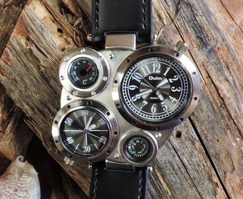 Oulm Duel Time Watch with Compass & Thermometer.