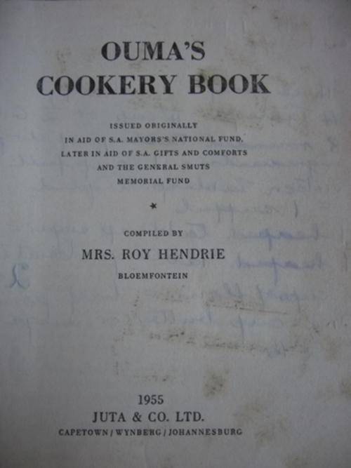 OUMA'S COOKERY BOOK COMPILED BY MRS ROY HENDRI - OUMA BEING GENL SMUTS WIFE MRS ISSIE SMUTS