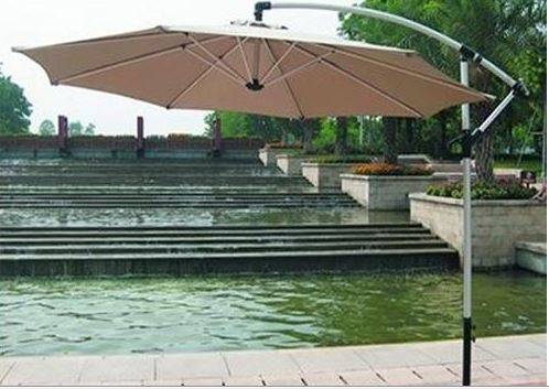 If you are looking for an way to find shade without compromising quality, the ever popular Cantilever Umbrella is the perfect solution for your patio, deck, or outdoor living space. The pole is constructed of sturdy aluminum with a powder coated finish. Shade will not be a problem. The canopy is made of a polyester fabric which is UV resistant as well as mold and mildew resistant. Additionally, the canopy is easy to clean -- just hand wash with mild soap and water.