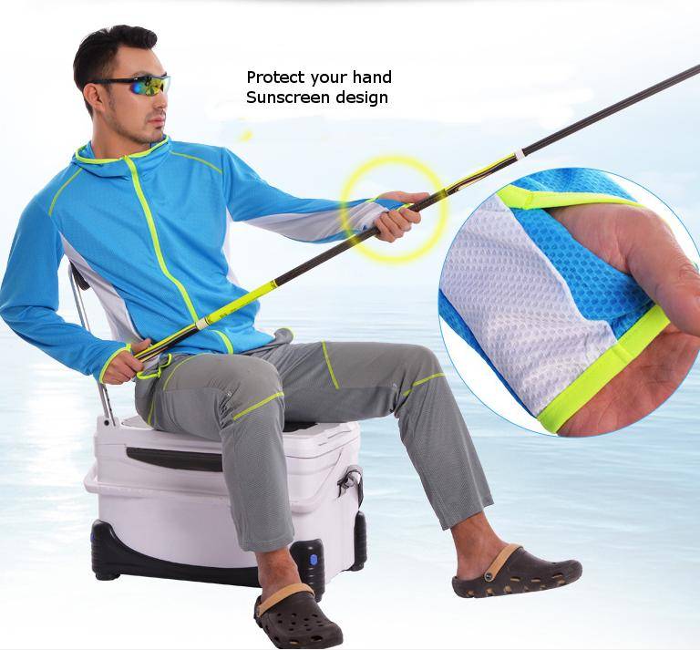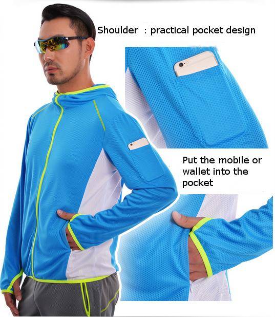 Package weight: 0.43 kg Features: 1.Anti-ultraviolet, moisture perspiration, quick-drying, breathable, anti-mosquito. 2.Comfortable and loose cap design,fashion quality pull head and professional anti-cursor 3.Has a zipper which can prevent cutting the skin 4.Invisible pocket design Specification: Material: Polyester Gender: Lovers Sport Type: Camping & Hiking Outerwear Type: Jackets Outdoor Jacket Type: Sun-Protective Package Included: 1*Fishing Clothing