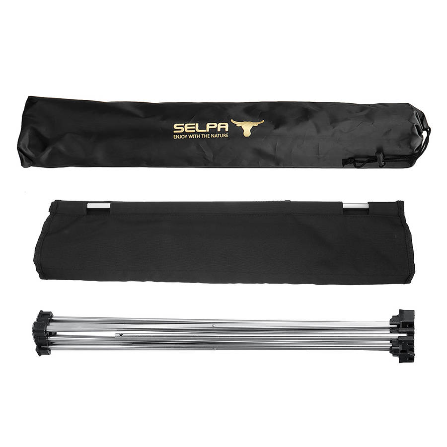 Specifications : -Weight: About 762g / 1.7lb -Bearing Capacity: Within 20kg -Composition: Bracket + desktop + storage bag -Material: 7075 aviation aluminum + 1680D waterproof Oxford lattice tear-resistant cloth -Bag Length: About 58cm / 22.8 -Folded Size(L * W): About 57cm * 8cm / 22.4 * 3.1 -Expand Size(L * W * H): About 57cm * 42cm * 39cm / 22.4 * 16.5 * 15.3 -Package Size(L * W * H): About 60cm * 10cm * 10cm / 23.6 * 4 * 4