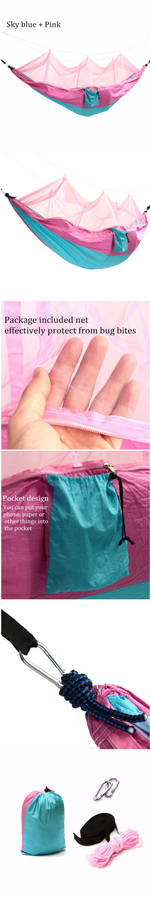 Features: Portable, easy to carry and use. Comfortable, fashionable colorful design. Solid and sturdy, maximum load weight achieve to about 300kg. Suitable for courtyard, outdoor, traveling, camping, climbing ect. Better enjoy the nature, close to nature and relax yourself. Design with net, effectively protect from bug bites.