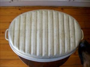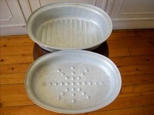 An old  oven dish/ warmer. This dish has been used but  is still has many years left.  The main dish measures 420mm x270mm x 100mm.