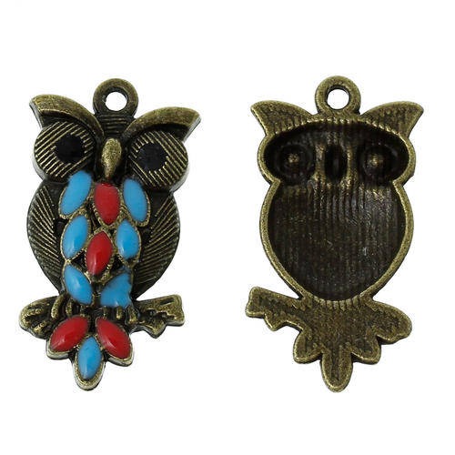 Owl Charm Pendants Antique Bronze And Enamel