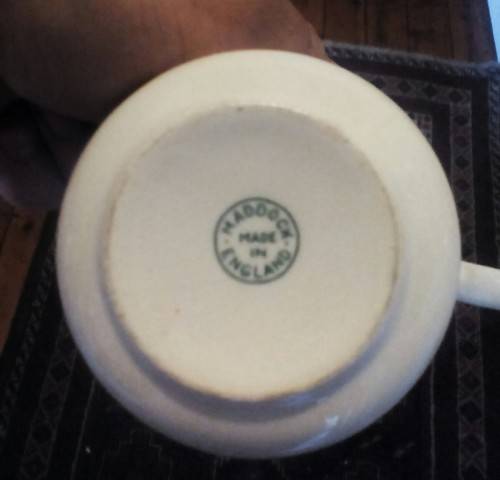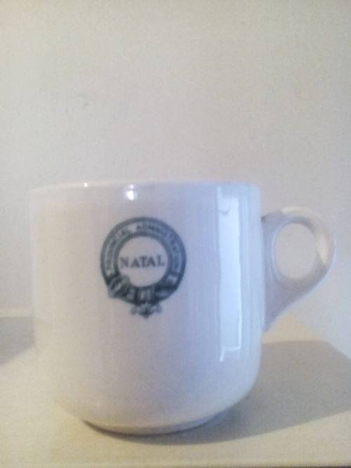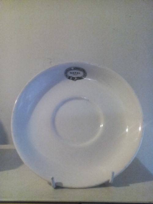 Natal Provincial Administration tea duo. White vitreous China with NPA logo in green. Cup stands 78mm high and 80mm across. Saucer measures 150mm across. Cup by Maddock, saucer by Kirklands. In good condition.
