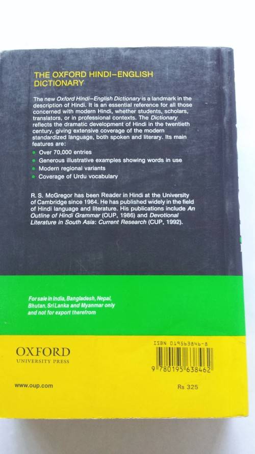 Oxford Hindi - English Dictionary, R.S. McGregor