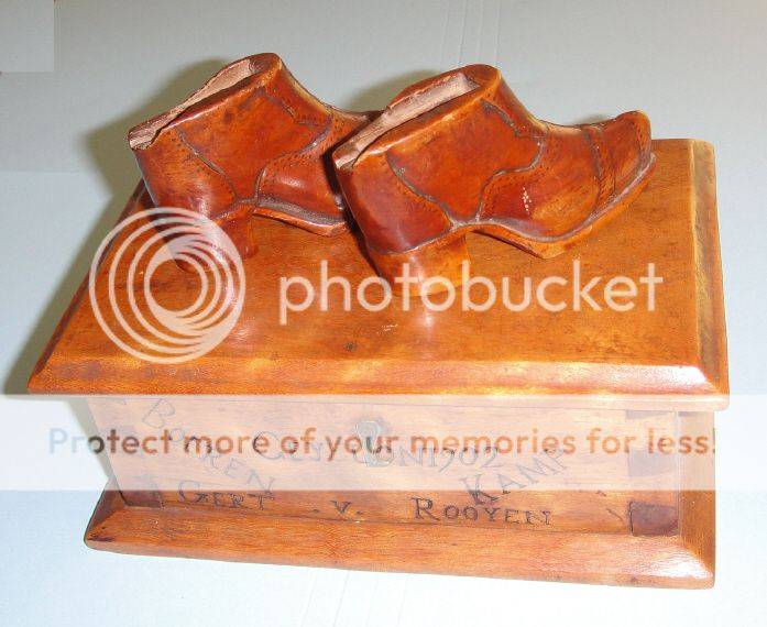 P.O.W. Boer War Art: Wooden Box & Miniature Shoes by Gert van Rooyen Boerenkamp Ceylon 1902
