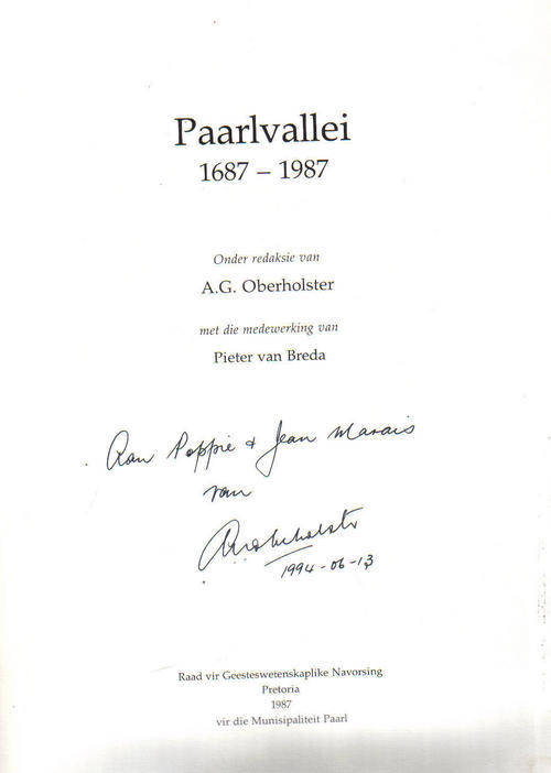Paarlvallei 1687 - 1987 - AG Oberholster - Geteken deur AG Oberholster