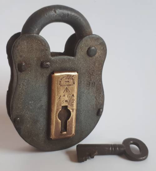 VINTAGE POST WW2 MILITARY PADLOCK & KEY PINSON WILLENHALL ENGLAND MOD KITBAG