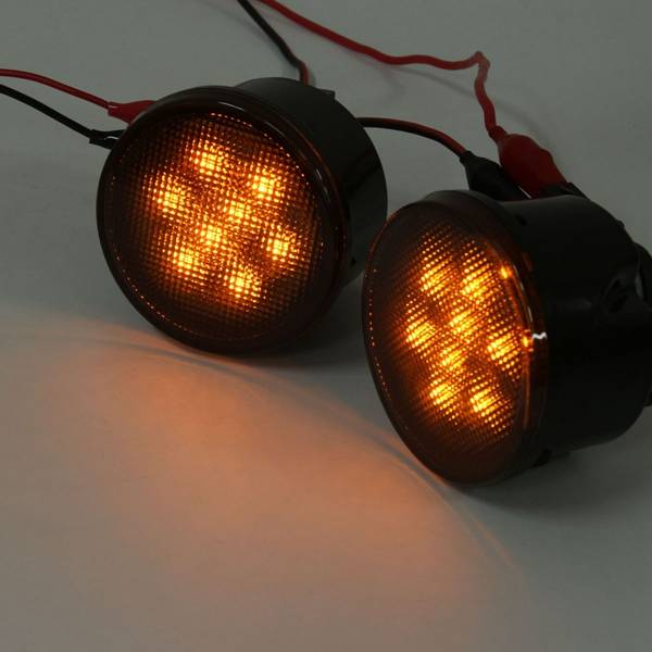 Pair 2000K LED Somke Len Amber Front Turn Signal Lights For Jeep Wrangler 07-15