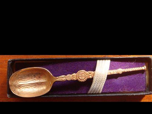 Spoon comes in original box with label saying coronation 1953 -condition of box paper worn off in sections - see pics