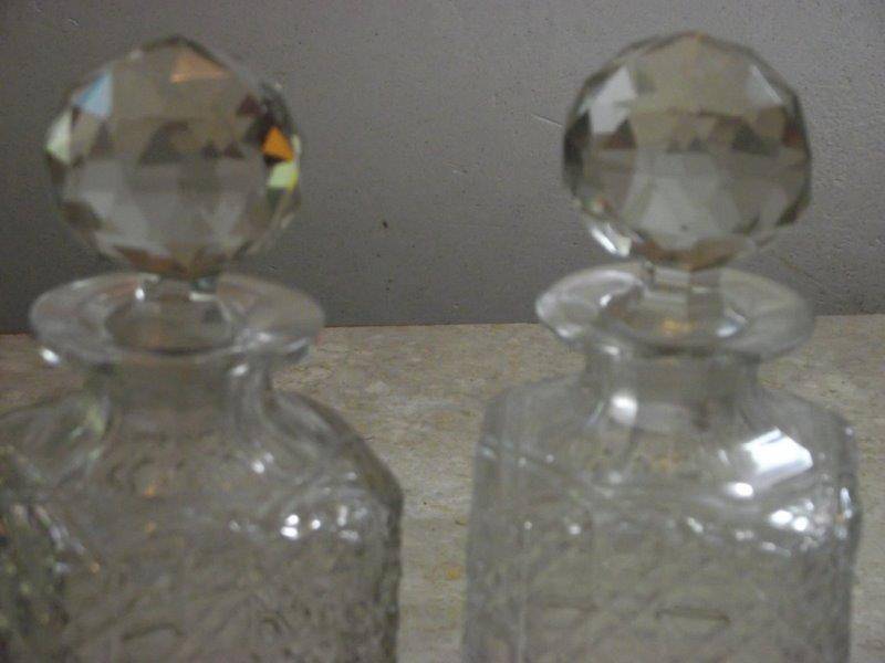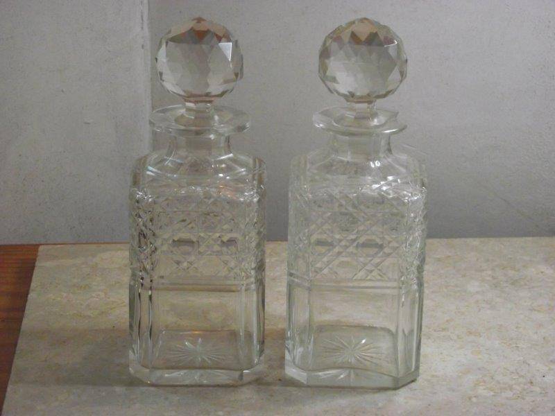 PAIR CRYSTAL DECANTERS WITH STOPPERS