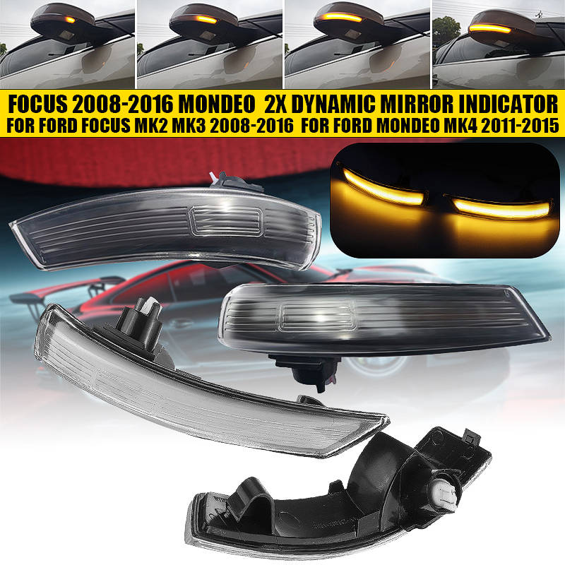 Pair Dynamic Door Wing Mirror LED Turn Indicator Signal Lights Amber For Ford Foc... (COLOR.: CLEAR)