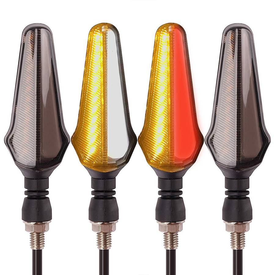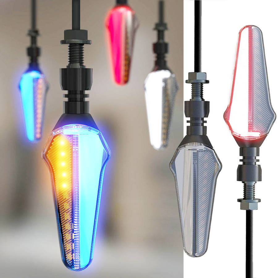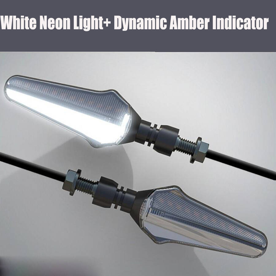 Description Choose excellent LED, super bright and long-lasting life. Easy to install,so you do not have to spend too much time on installation. High quality and superb lampshade, be of strong light transmission and beautiful appearance. Installing with no fault,and it is easy and convenient to install. Dedicated to the motorcycle, the interface is the same as the original motorcycle, simple and convenient High quality workmanship, stable performance will give you a different experience. Specification: Product name: Motorcycle indicator Material: LED/ABS/Plastic/Acrylic Size: 147*41mm/5.8*1.6inch Cable: 53cm Voltage: 12V DC Color: White+Amber/Blue+Amber/Red+Amber(optional) Luminous color: Red, Blue, White, Amber Function: White/Blue/Red Neon Light+Dynamic Amber Indicator Light quantity: 24pcs(each one) Waterproof: IPX6 Placement on vehicle: Front,right&left/Rear,right&left Package Included: 2 X Motorcycle Indicators