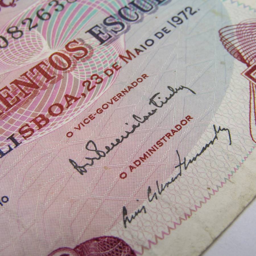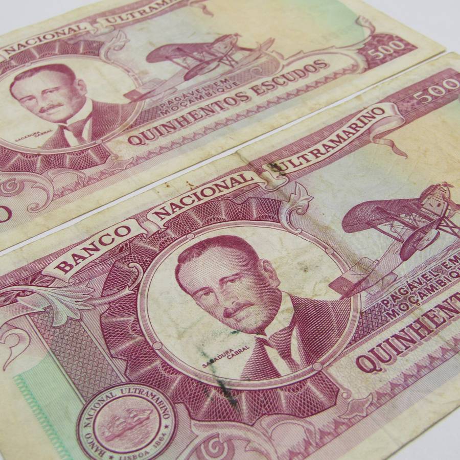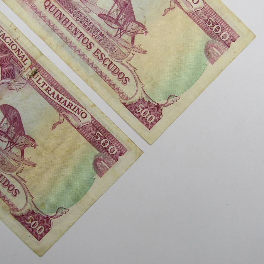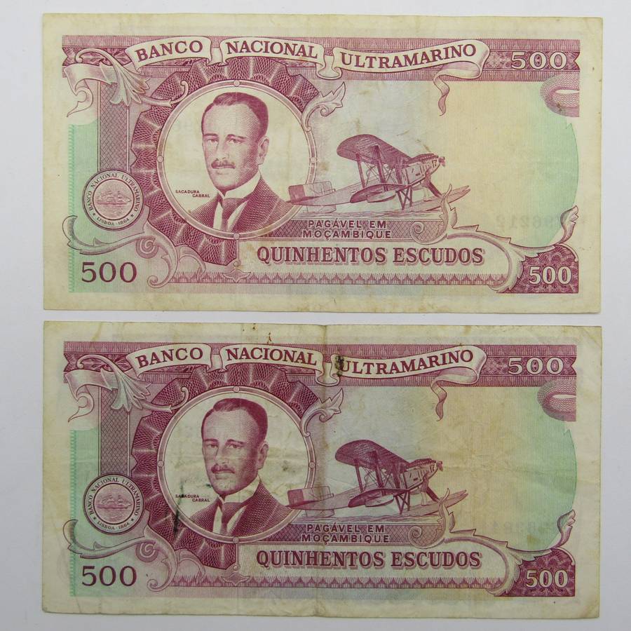 Pair of 1972 500 Mozambique Escudos banknotes - 2 notes with different signatures