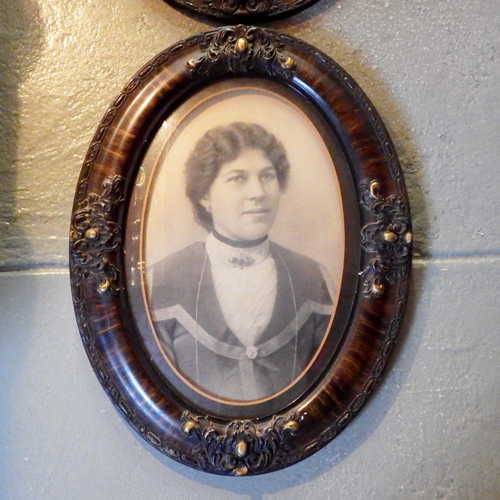 Pair of Antique Art oval photo frames with photos - Bubble glass - Size : 63 cm x 47 cm