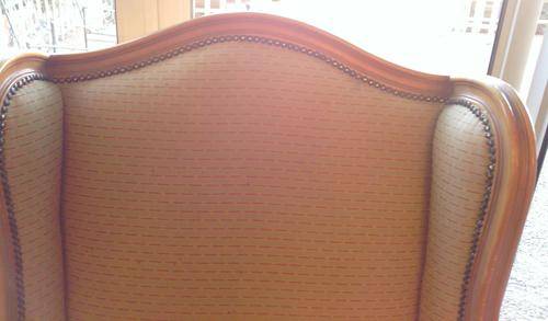 With French inspiration, the wing chair lends a refined ,vintage feel to your home.This armed wing chair features an amply padded seat back,sides and arms,as well as a feather down seat cushion covered in French linen with matching lumber pillow.