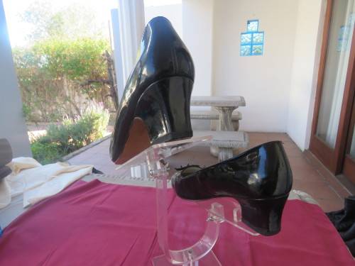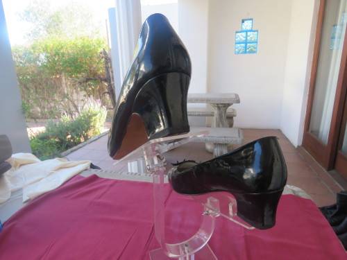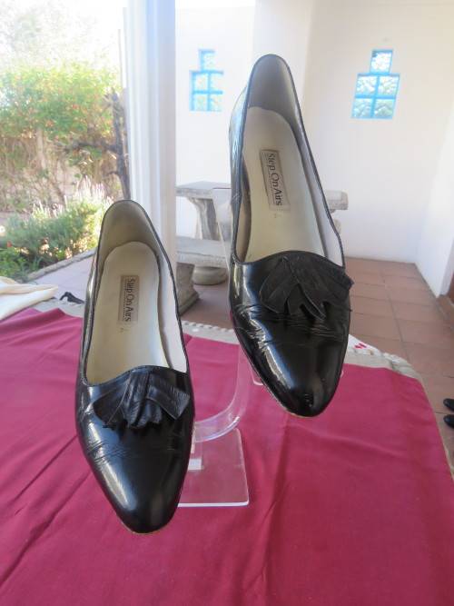 Pair of black patent leather 'STEP ON AIR' shoes in size 7.Low heels and pointed fronts.Good cond.