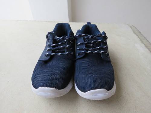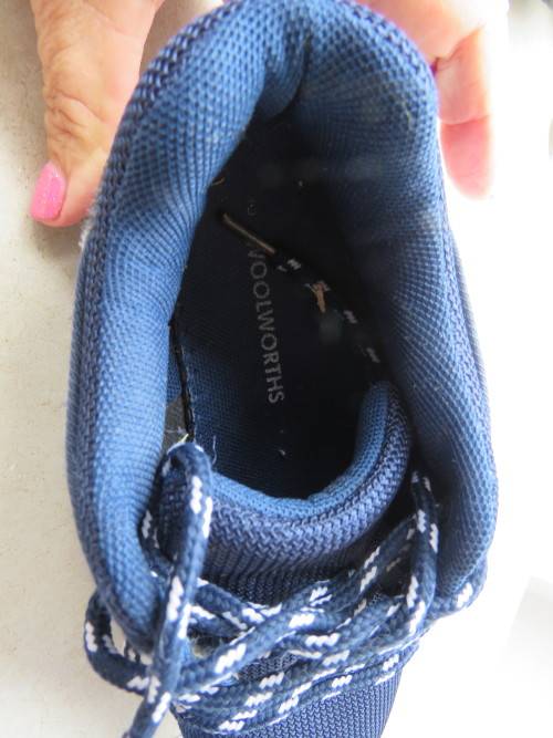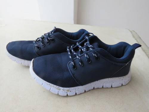 Pair of boys navy canvas tekkies in size 2 by WOOLWORTHS.As new