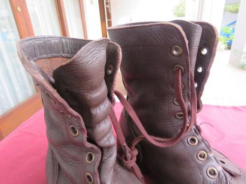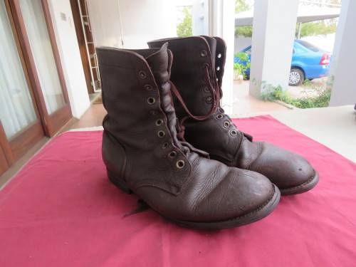 Pair of brown genuine leather SADF army boots issued 2004 in size 277 army size 9.5.As new.
