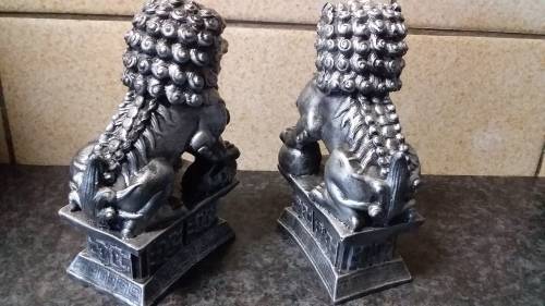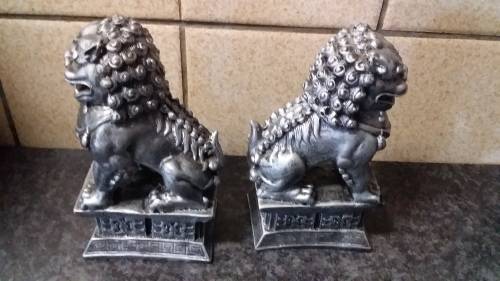 Pair of Detailed Solid Coated Ceramic Foo Dog Ornaments