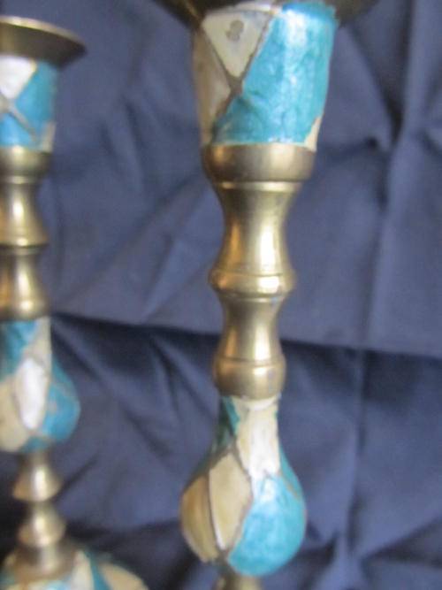 PAIR OF ENAMELLED BRASS CANDLESTICKS