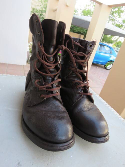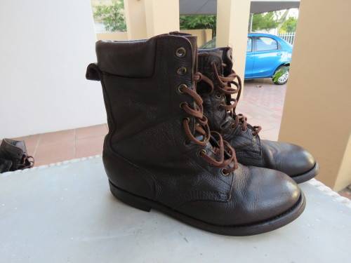 Pair of ex SADF brown genuine leather boots in army size 255.Our size 7.Made by DWS.Good cond.