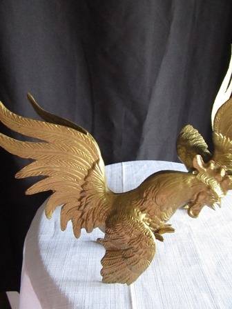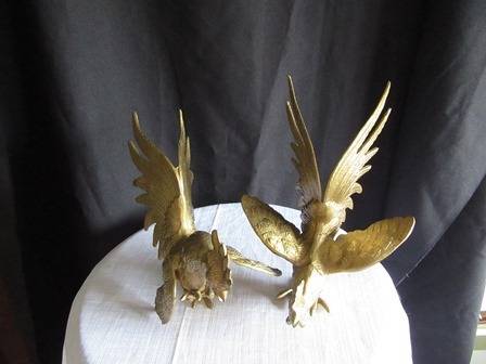 Pair of metal gold Fighting Cocks they are 20cm x 15cm & 20cm x 12cm