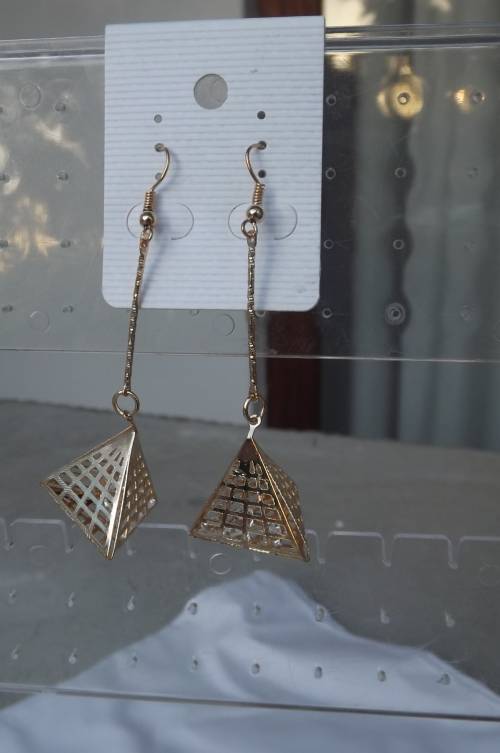 Pair of gold toned piramid dangle earrings.New item.Light weight